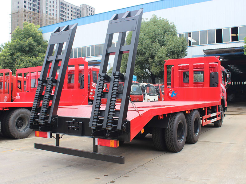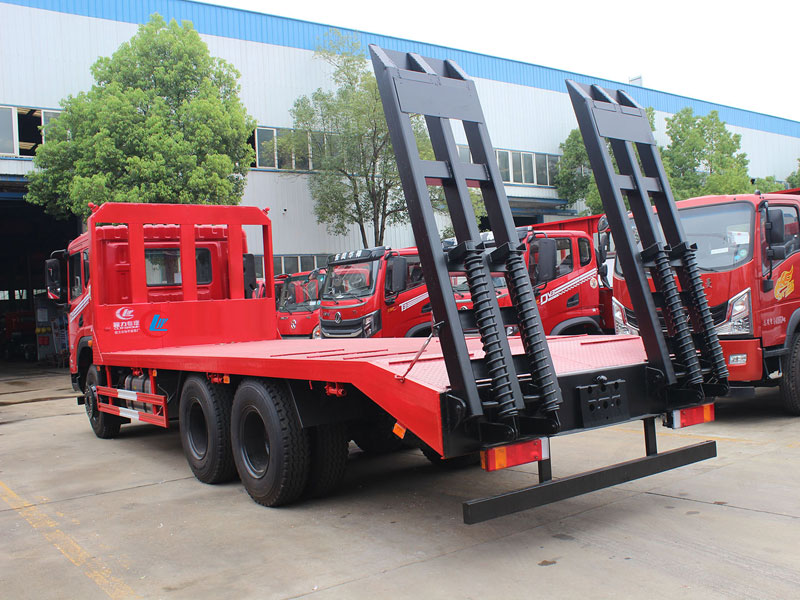 國六東風華神DV5后八輪平板運輸車底盤配置:玉柴270馬力國六發動機,陜齒10檔變速箱帶高低檔,東風2021新款T5駕駛室,兩點懸浮,10T雙后橋,軸距4350+1350mm,11R20鋼絲輪胎,280雙層大梁,整車尺寸:10000X2550X3150,氣囊座椅,中控鎖,電動門窗,遙控鑰匙。總質量25噸,額定13.07噸,整備11.8噸,標配雙簧爬梯。