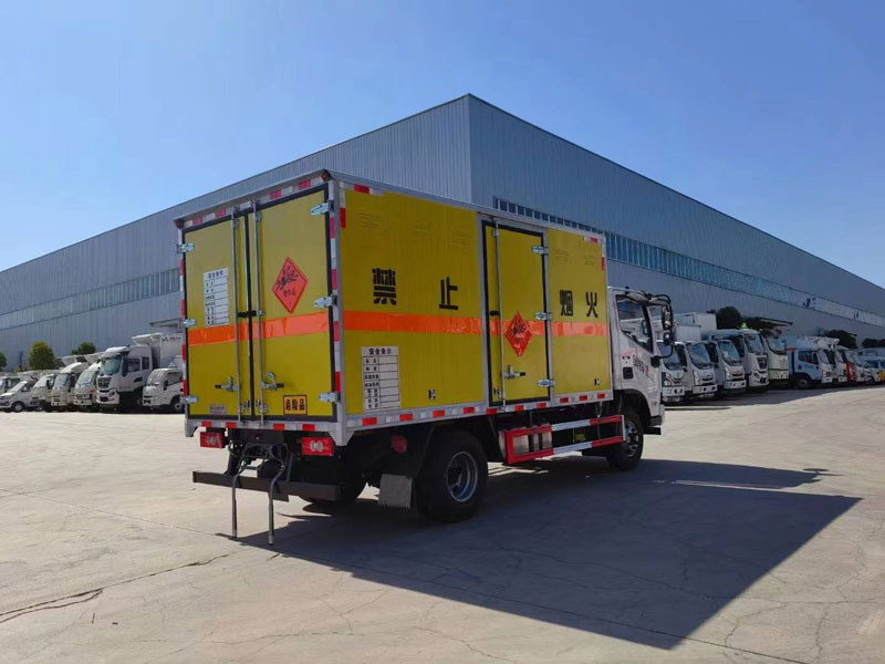 廂體為雙層金屬骨架結構,外部為冷扎鋼板,內壁采用鋁合金板蒙面,夾層為隔熱阻燃材料填充,側壁設有防雨功能自然通風窗口,底部鋪有阻燃導靜電膠板外觀有危險品標識,反光標,防靜電拖帶,1類易燃氣體危險品標示牌,其余標配。