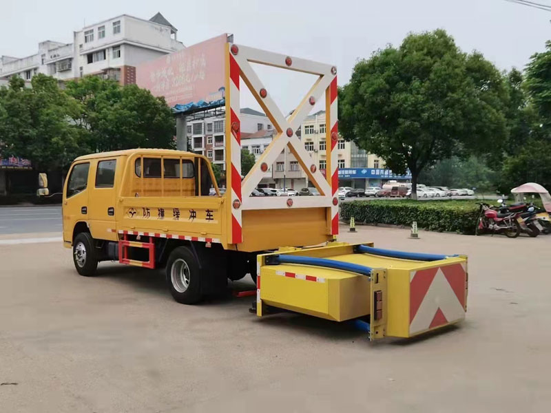 東風小多利卡D6防撞緩沖車上裝配置:護箱:采用Q235國標邊3mm底板花紋板4mm厚,箱體后部防撞緩沖模塊包采用國產乾行達公司技術產品70K防撞緩沖模塊,防撞緩沖吸能模塊主要由車載防撞緩沖墊和導向標志架組成,充當施工作業車輛后方的緩沖衛士。如若發生追尾事故,能夠在肇事車輛和前方施工作業區域之間構建一個緩沖區域,通過機具結構變形吸收撞擊的能量,限度地降低被保護人員及設備遭到碰撞的幾率。高性能液壓系統,可實現快速舉升和落下操作,方便設備運輸轉場,一鍵啟動功能,舉升和落下防撞裝置,當防撞裝置未完全落下到工作位置或舉升到垂直運輸位置時,會有自動警告音提示。