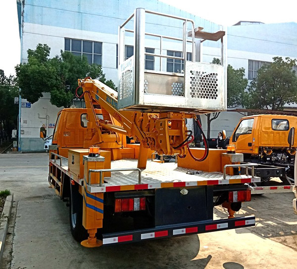 作業高度21米,上裝部分顏色按照公告為工程黃,整車帶四個液壓伸縮支腿(上下伸縮和水平伸縮),共八條油缸,支腿為前V后H型,應急泵,斗帶360度旋轉,無線遙控,其它按廠內標準配制。