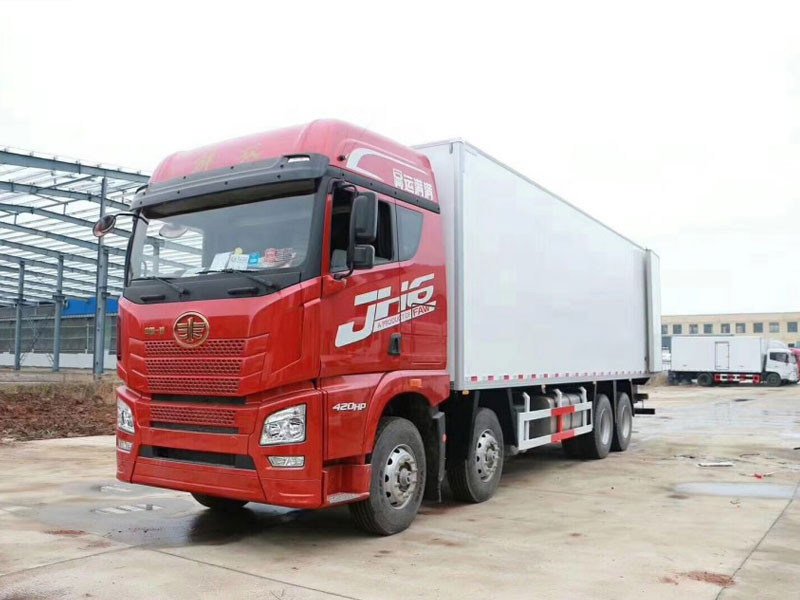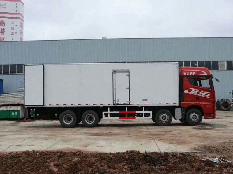 解放JH6前四后八程力9米6冷藏車:廂體采用全塑全封閉復合材料板塊組合結構,內外蒙皮為玻璃鋼板,中間夾層為聚氨酯發泡隔熱材 料,四側用高強度膠將玻璃鋼板與聚氨酯泡沫材料粘合在一起,形成一種封閉性板塊,并在拼裝成廂體時用高強度膠粘結在一起,并用內埋高強度螺釘進行緊固,