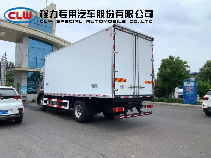 廂體采用內?外玻璃鋼,中間8CM保溫板,后開雙?門,廂體?右側靠前單開?門,前部?排水孔,門條邊?采用橡膠封密?條,鋁合金型材包邊,不銹鋼?包角,不銹鋼?門鎖,不銹鋼門框?合頁,廂體內?節能LED照明燈。底部鋁花紋防滑板。