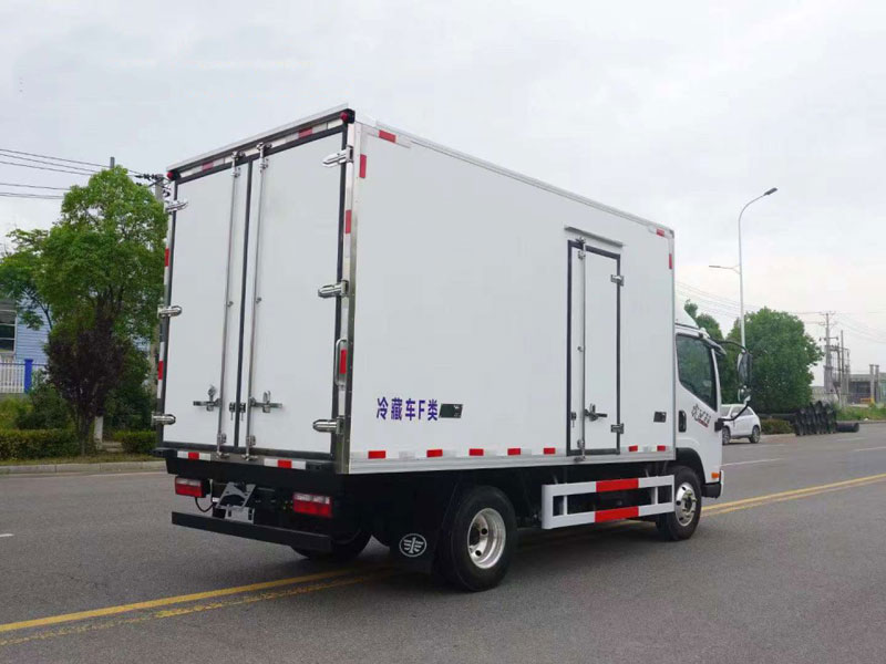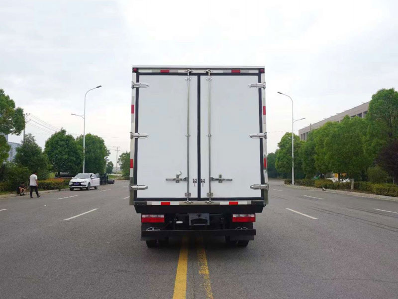 廂體采用內(nèi)?外玻璃鋼,中間8CM保溫板,后開雙?門,廂體?右側(cè)靠前單開?門,前部?排水孔,門條邊?采用橡膠封密?條,鋁合金型材包邊,不銹鋼?包角,不銹鋼?門鎖,不銹鋼門框?合頁,廂體內(nèi)?節(jié)能LED照明燈。底部鋁花紋防滑板。